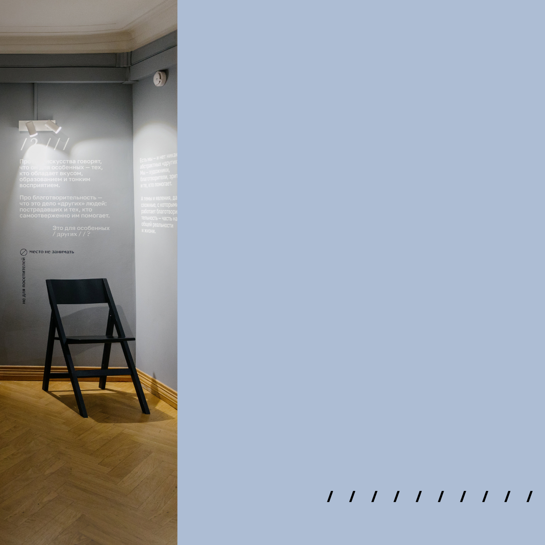 Чаще всего, когда мы попадаем в «типичную» галерею — в ней ничего нельзя трогать: об этом напоминают смотрители, барьеры. Возникает ощущение закрытости и элитарности мира искусства. И такое ощущение: «А к чему здесь можно притрагиваться?» есть и у людей, которые сталкиваются с благотворительностью.